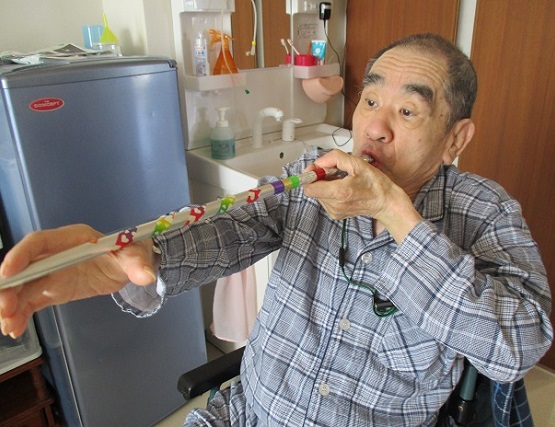 趣味のひとつとして吹き矢をお持ちの入居者様。