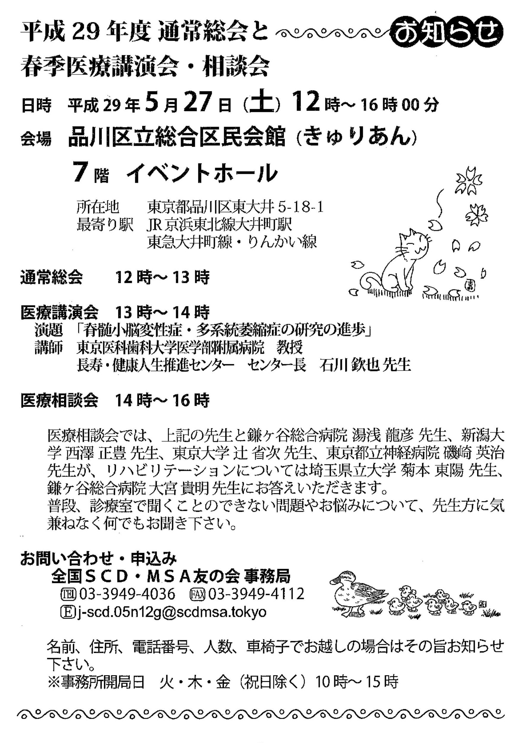 SCD・MSA友の会(患者会)が毎年春に行っている講演会・相談会の日程が近づいてきました。 患者会ホームページ ⇒ http://scdmsa.tokyo/
