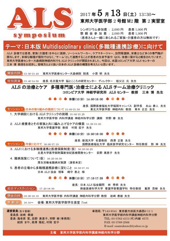 東邦大学医学部主催のALS シンポジウムに参加してきました。