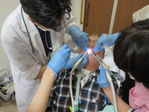 本日は訪問歯科の日です。今回はポータブル治療機を持参していただいたので、虫歯の治療が施設内で可能です。