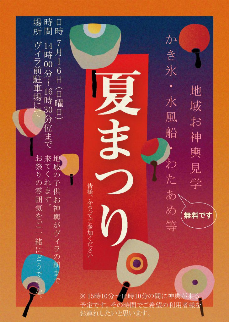 初めての試みになりますが、お祭りの雰囲気を入居者やご家族の方々に感じて貰えたらと思っております。