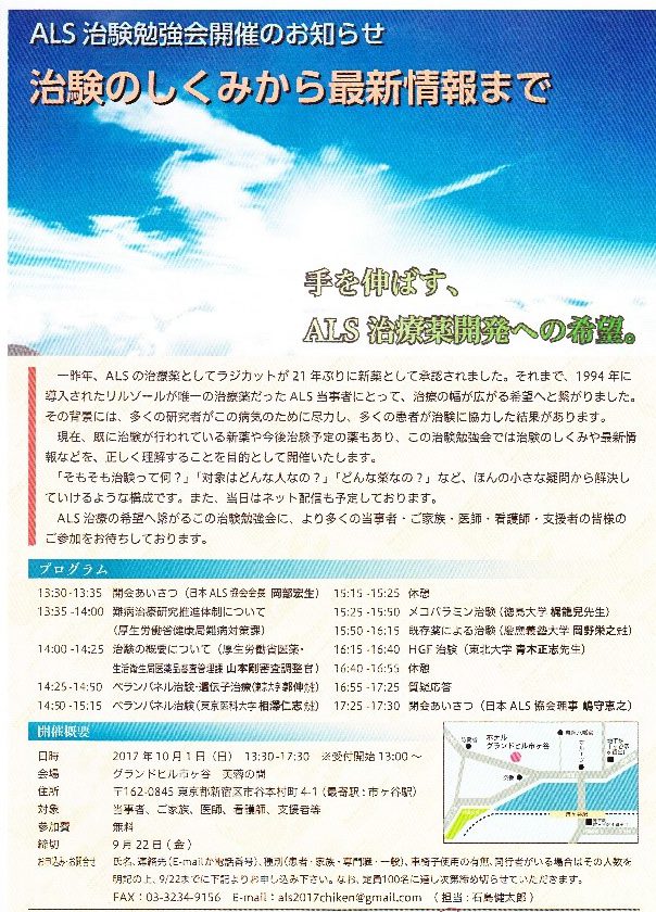 今日はALS治療薬の治験情報勉強会です。