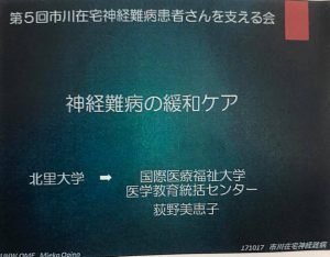 今回の講師は神経難病の緩和ケアでは知らない方がいないほど有名な荻野美恵子先生です。