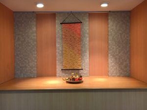 昨年も申し上げましたがエントランスの模様替えで一番困るのが11月なんです。ハロウィン(10月)とクリスマス(12月)に挟まれた11月。地味目になるのも仕方ないですよね。