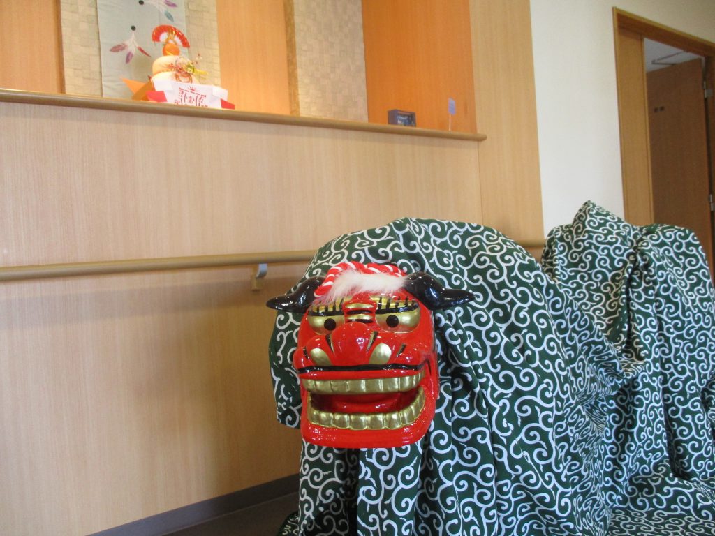 獅子舞がみさとヴィラにやってきました!!なかなの貫禄です。