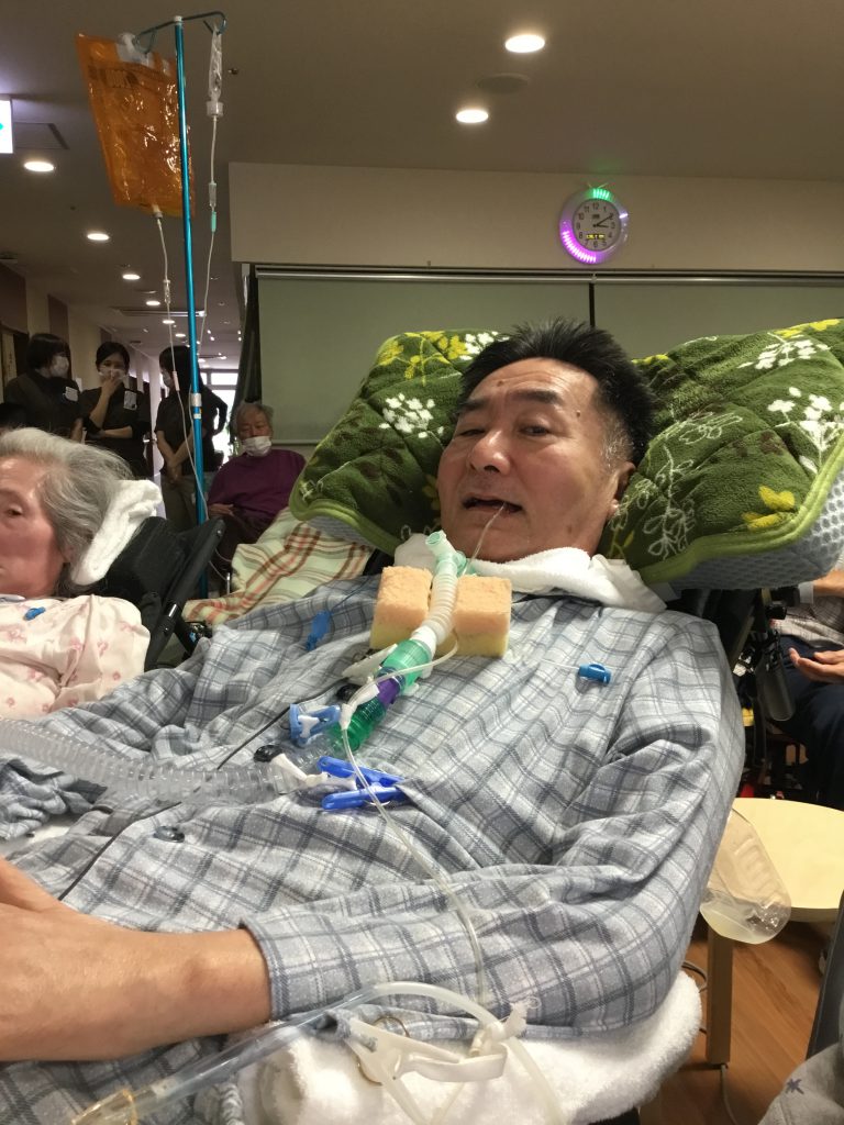 アクリル板などの透明な板に「はい」「いいえ」や「50音」等が書かれており、介助者が文字盤を指さししたり、見つめている文字が利用者さまと介助者の瞳を結ぶ視線の中心に来るように文字盤を動かして使用します。目線が動かせる方なら外出先など場所を問わず手軽に使用できるため、欠かせない意思伝達アイテムです。