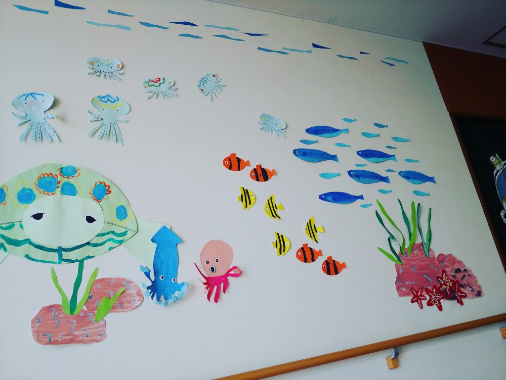 リハビリの一環として作品を壁に貼り付けてみました。