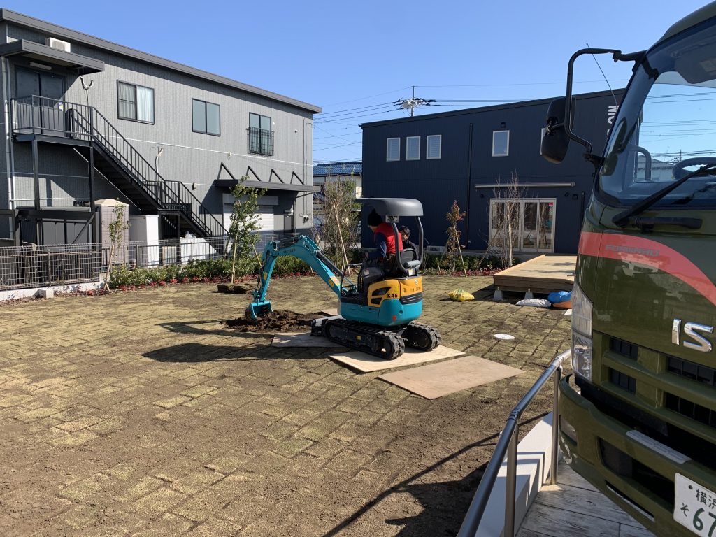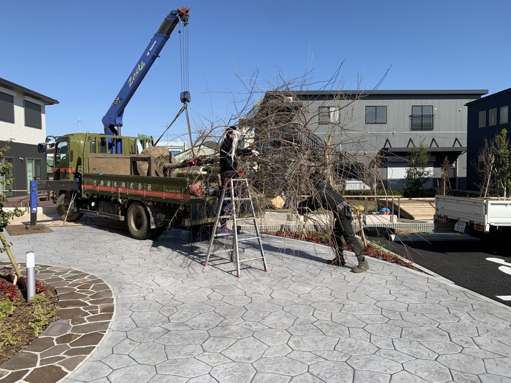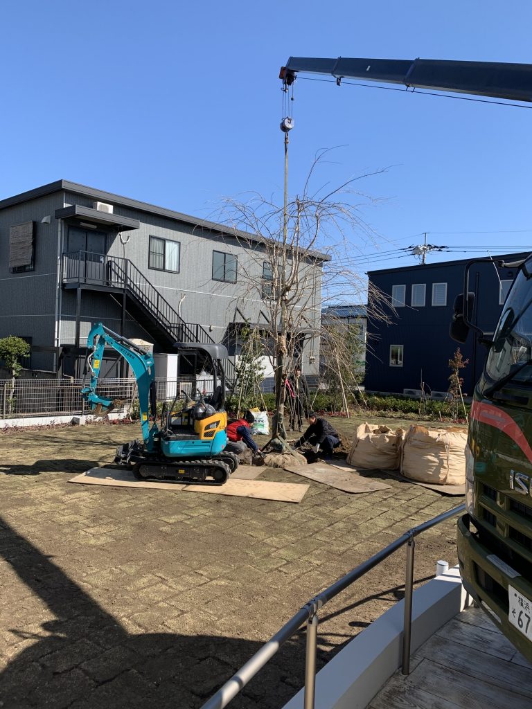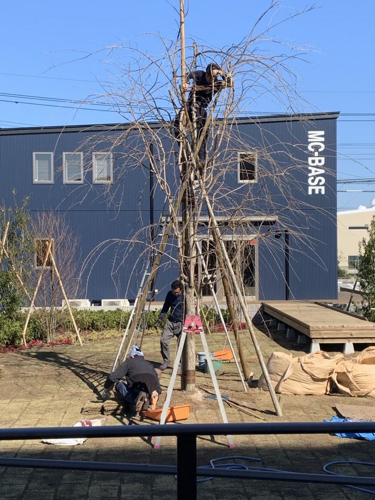 ノイエの中庭に枝垂桜(しだれざくら)を植樹いたしました。