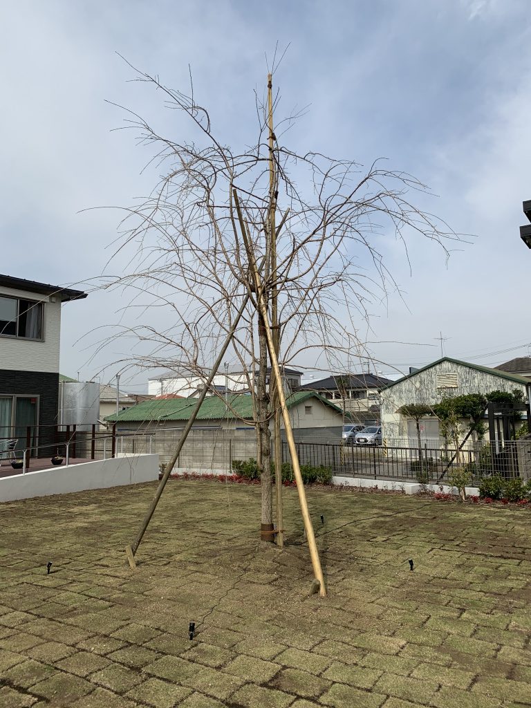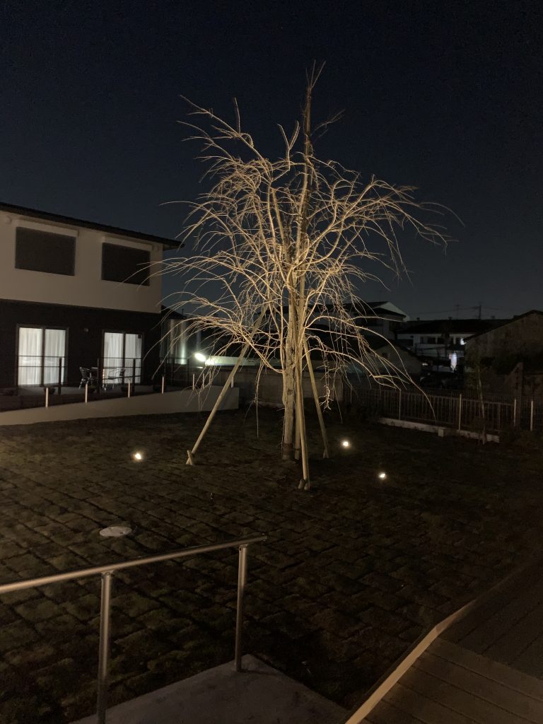 ノイエの中庭に植樹したしました「しだれ桜」にライトアップをしてみました。