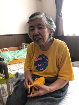 今日はアクリルたわしを編まれています。出来上がったものは施設で使わせていただいたり、職員にいただいたり。皆が喜んで使ってくれるのが嬉しいのだそうです。有り難いことです。頑張りすぎて時々肩が痛くなったりもしますが・・・・。