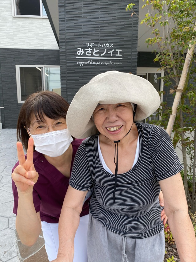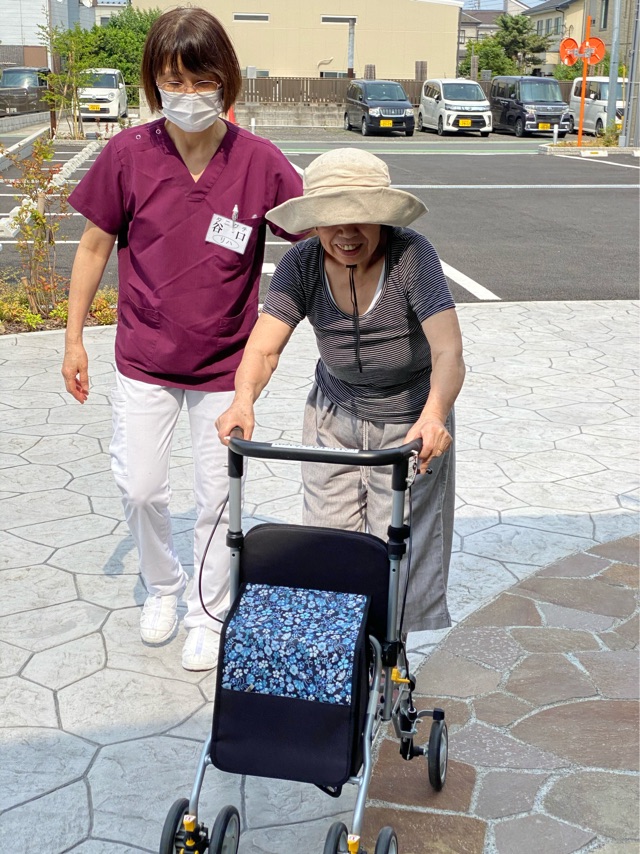 今日はお天気が良いのでリハビリ職員と久しぶりのお散歩へ。