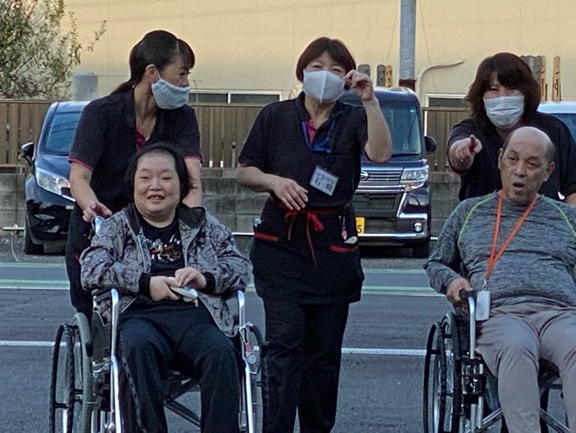 お天気が良いので近所のコンビニまで職員と一緒にお散歩です。