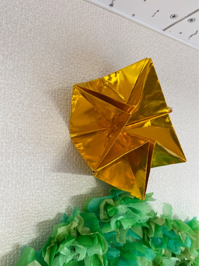 職員が折り紙で折ってくれたのですが、良く見ると立体的で素敵なんです♡