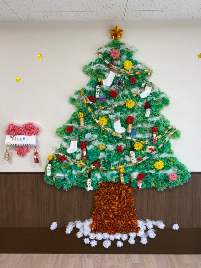 食堂のツリーにまたまた飾りが増えて賑やかに♡