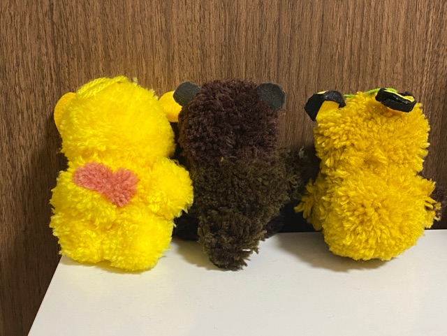 毛糸のポンポンで動物づくりを楽しまれている利用者様。