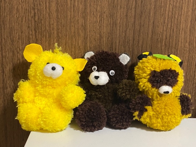 今回はクマちゃん2匹にタヌキさん。