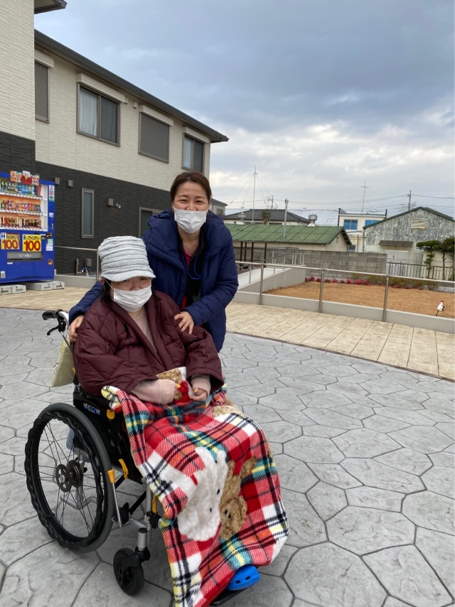 「寒いけれどお散歩に出かけよう!」と準備した利用者様。