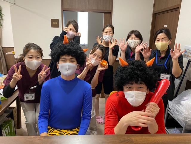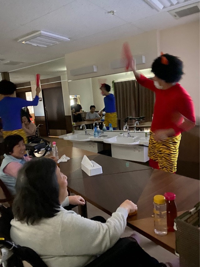 昼食に集まっていた利用者様と職員も『ビックリ!』やら『大爆笑!』やら(笑)