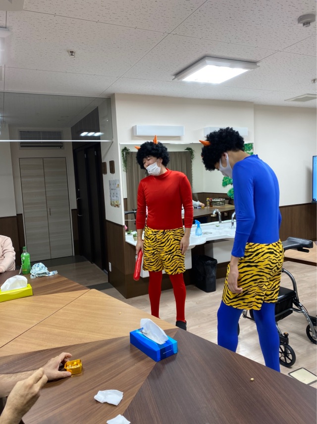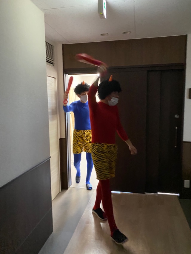 大暴れする鬼に向かって「鬼は~外!福は~内!」の掛け声で豆をぶつけ