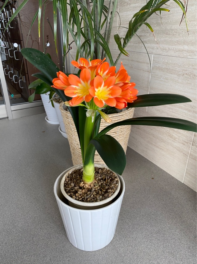 ノイエ玄関の君子蘭も綺麗なお花を咲かせています。