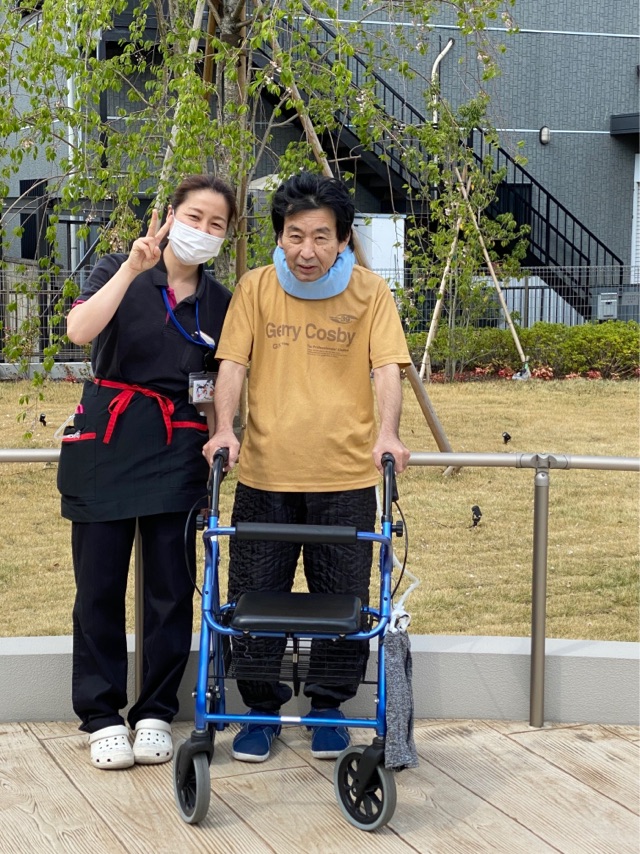駐車場までですがご自分で歩いて行かれ楽しそうでした。体調をみながら少しずつ前の生活に戻れるように頑張っていらっしゃいます。