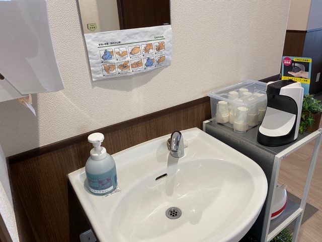 施設内に入館される方は、体温測定後、手洗い、うがい、消毒をお願いしています。手の洗い方も掲示してあります。