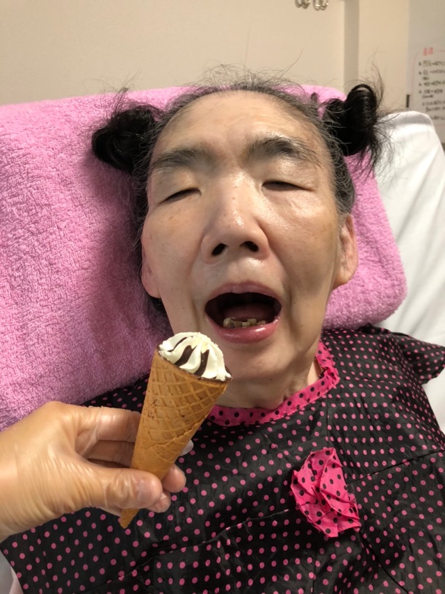 そして今日の入浴後、おやつの時間で楽しみにされていたアイスを♡