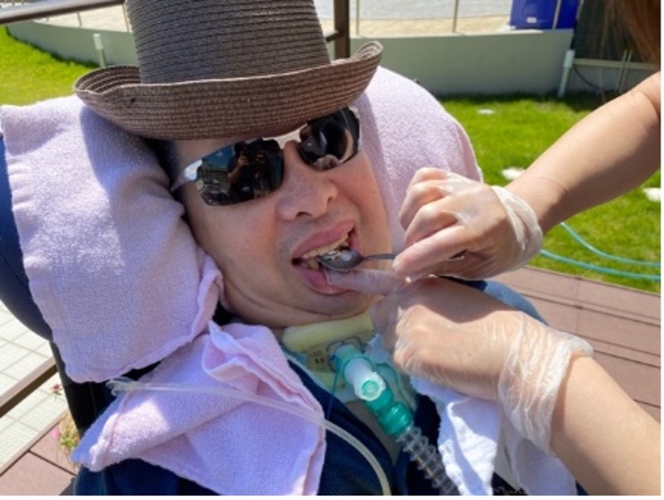 お風呂は利用者さまにとって最も楽しみな時間のひとつです。MCには人工呼吸器を利用している利用者さまも快適・安全に入浴することができる、機械式の特殊な浴槽があります。ストレッチャー上に寝たままの状態で、洗身・洗髪しゆったりと入浴することができます。