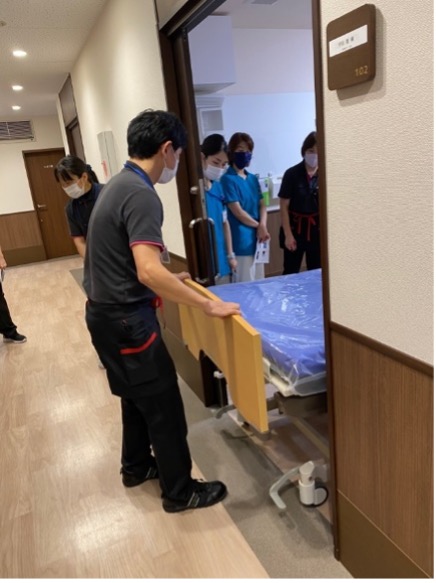 MCでは、個室を利用者さまのご自宅のように、自由にレイアウトしていただいています。ベッド・洗面台・エアコン等は標準設置されていますが、家具、日用品、専用テレビ等を自由に持ち込むことが可能です。大きなテレビでドラマや映画を楽しんだり、ミシンで手芸をしたり、壁一面に思い出の写真を飾ったり…。一人ひとりの暮らし方を変えることなく、自由に日常を過ごしていただけます。
