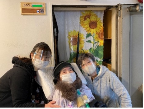 MCでは、個室を利用者さまのご自宅のように、自由にレイアウトしていただいています。ベッド・洗面台・エアコン等は標準設置されていますが、家具、日用品、専用テレビ等を自由に持ち込むことが可能です。大きなテレビでドラマや映画を楽しんだり、ミシンで手芸をしたり、壁一面に思い出の写真を飾ったり…。一人ひとりの暮らし方を変えることなく、自由に日常を過ごしていただけます。