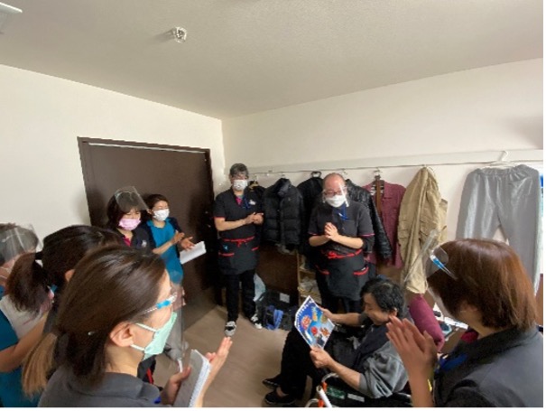 MCでは、個室を利用者さまのご自宅のように、自由にレイアウトしていただいています。ベッド・洗面台・エアコン等は標準設置されていますが、家具、日用品、専用テレビ等を自由に持ち込むことが可能です。大きなテレビでドラマや映画を楽しんだり、ミシンで手芸をしたり、壁一面に思い出の写真を飾ったり…。一人ひとりの暮らし方を変えることなく、自由に日常を過ごしていただけます。