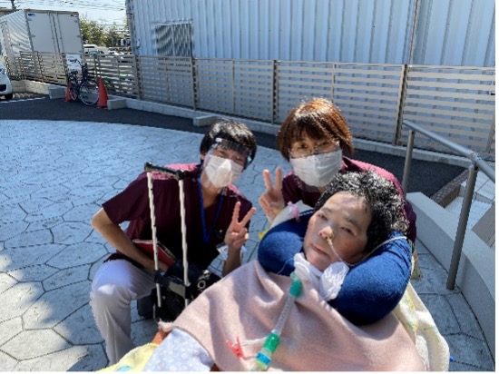 ティルティング機構(姿勢を維持したまま座面ごと角度を変えて、お尻や太ももにかかる体重を背中や腰へ分散させる)とリクライニング機構(背もたれの角度を変える)が一体になった多機能型の車椅子。人工呼吸器も搭載可能で、快適に日々の外出を楽しめます。