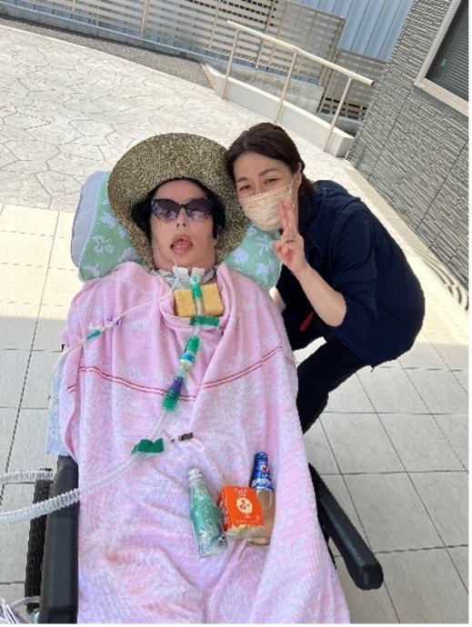 アクリル板などの透明な板に「はい」「いいえ」や「50音」等が書かれており、介助者が文字盤を指さししたり、見つめている文字が利用者さまと介助者の瞳を結ぶ視線の中心に来るように文字盤を動かして使用します。目線が動かせる方なら外出先など場所を問わず手軽に使用できるため、欠かせない意思伝達アイテムです。