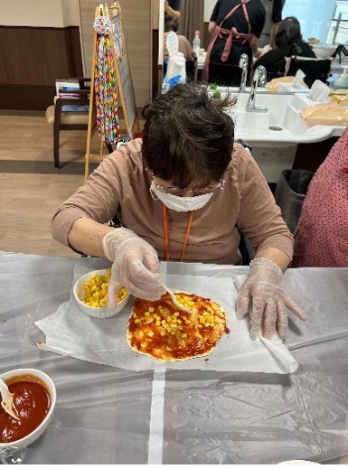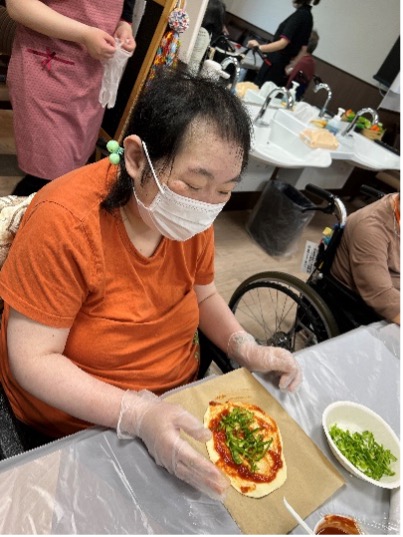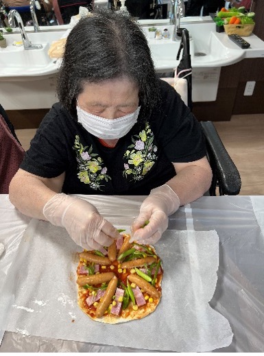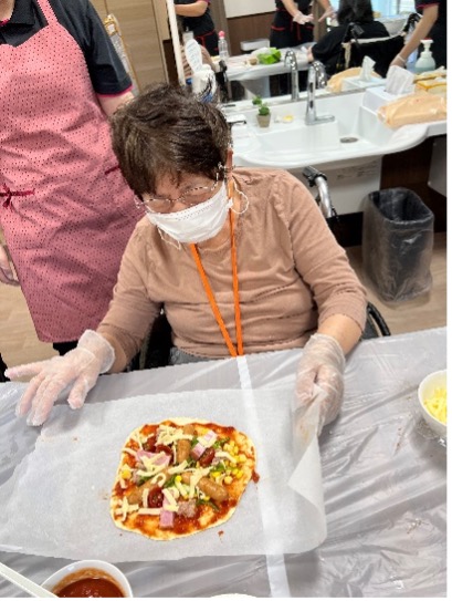 MCでは、個室を利用者さまのご自宅のように、自由にレイアウトしていただいています。ベッド・洗面台・エアコン等は標準設置されていますが、家具、日用品、専用テレビ等を自由に持ち込むことが可能です。大きなテレビでドラマや映画を楽しんだり、ミシンで手芸をしたり、壁一面に思い出の写真を飾ったり…。一人ひとりの暮らし方を変えることなく、自由に日常を過ごしていただけます。