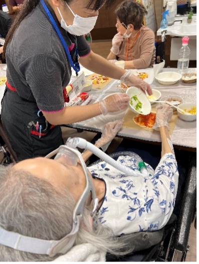 お風呂は利用者さまにとって最も楽しみな時間のひとつです。MCには人工呼吸器を利用している利用者さまも快適・安全に入浴することができる、機械式の特殊な浴槽があります。ストレッチャー上に寝たままの状態で、洗身・洗髪しゆったりと入浴することができます。