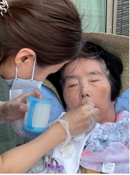 口を閉じることに障害があり、食べ物を口の中に入れることが困難な方をサポートするスプーン。スライドして適量を押し出し、飲み込みやすい下の上の位置に食べ物を運ぶことが可能です。食べる側も介助する側もストレスなく、楽しい食事の時間を過ごせます。