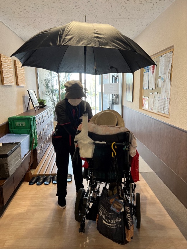 MCでは、個室を利用者さまのご自宅のように、自由にレイアウトしていただいています。ベッド・洗面台・エアコン等は標準設置されていますが、家具、日用品、専用テレビ等を自由に持ち込むことが可能です。大きなテレビでドラマや映画を楽しんだり、ミシンで手芸をしたり、壁一面に思い出の写真を飾ったり…。一人ひとりの暮らし方を変えることなく、自由に日常を過ごしていただけます。