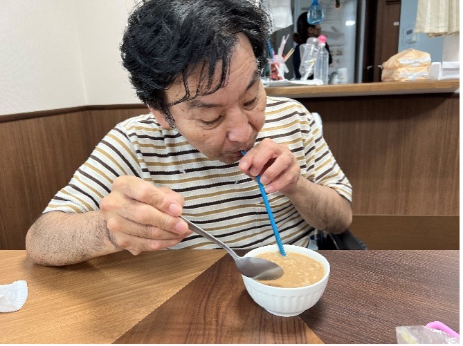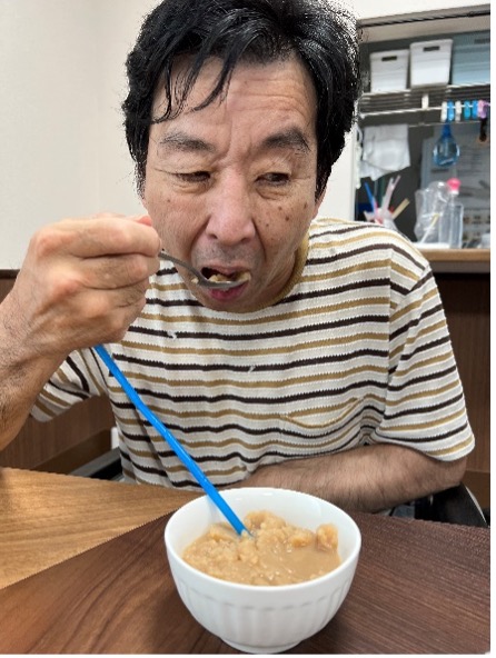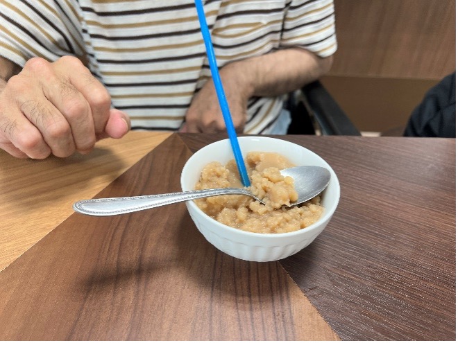 口を閉じることに障害があり、食べ物を口の中に入れることが困難な方をサポートするスプーン。スライドして適量を押し出し、飲み込みやすい下の上の位置に食べ物を運ぶことが可能です。食べる側も介助する側もストレスなく、楽しい食事の時間を過ごせます。