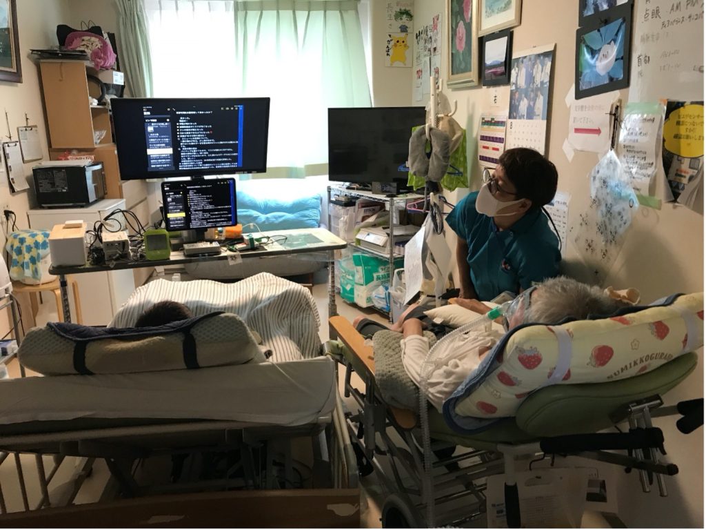 センサーを使用して身体の一部をわずかに動かすだけで、文字をパソコンに入力できる意思伝達装置。 DVDやテレビなどのリモコン操作、インターネットや電子メールなど、介護者の力を借りることなく、利用者さまが多くのことを自由に行うことができます。これまでの仕事を継続する・新しい活動を始めるなど、さまざまな可能性を広げるツールであり、ALS当事者で国会議員の舩後靖彦氏も使用していることで知られています。