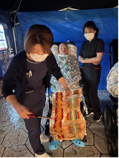 ティルティング機構(姿勢を維持したまま座面ごと角度を変えて、お尻や太ももにかかる体重を背中や腰へ分散させる)とリクライニング機構(背もたれの角度を変える)が一体になった多機能型の車椅子。人工呼吸器も搭載可能で、快適に日々の外出を楽しめます。