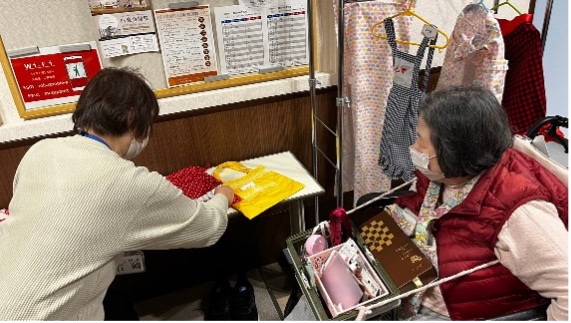 MCでは、個室を利用者さまのご自宅のように、自由にレイアウトしていただいています。ベッド・洗面台・エアコン等は標準設置されていますが、家具、日用品、専用テレビ等を自由に持ち込むことが可能です。大きなテレビでドラマや映画を楽しんだり、ミシンで手芸をしたり、壁一面に思い出の写真を飾ったり…。一人ひとりの暮らし方を変えることなく、自由に日常を過ごしていただけます。