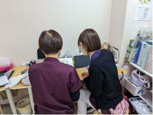 「私はその人の希望に寄り添い、やりたいことを見つけてやっていただくようにしていました。しかし、先輩は利用者様が自分で思っている能力以上のものを引き出し、どうしたらできるか?たくさん考えて形にしているところがとてもすごいと思いました。」