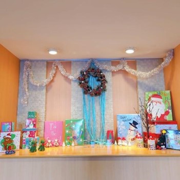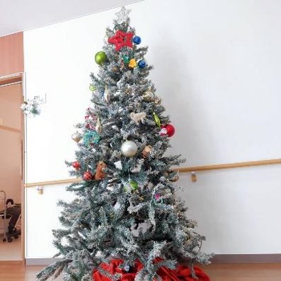 そうして当施設では素敵なリースやツリーの飾付けが出来上がりました。