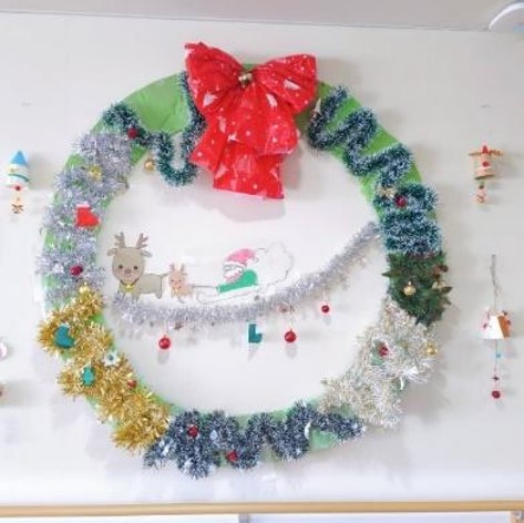 当施設ではおしゃれで手作りリースを作成し、クリスマス気分を盛り上げてくれました。