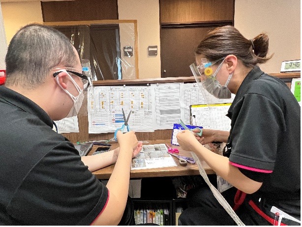 アクリル板などの透明な板に「はい」「いいえ」や「50音」等が書かれており、介助者が文字盤を指さししたり、見つめている文字が利用者さまと介助者の瞳を結ぶ視線の中心に来るように文字盤を動かして使用します。目線が動かせる方なら外出先など場所を問わず手軽に使用できるため、欠かせない意思伝達アイテムです。