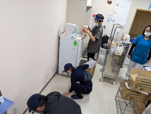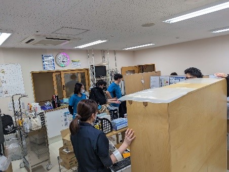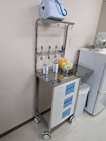 点滴や物品の置き場所などは棚を使って工夫していました。