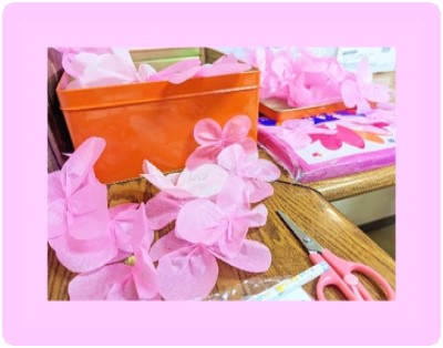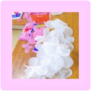 例えば、一つ一つ小さい花びらですが、一人ではとてもダンボール箱いっぱいになるまで創ることは難しいです。