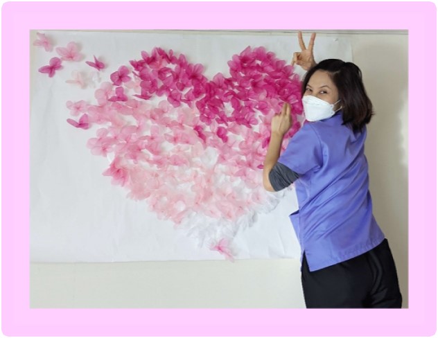 利用者様に喜んでいただくため、ハッピーバレンタインの大きなハート(愛)を作りました。