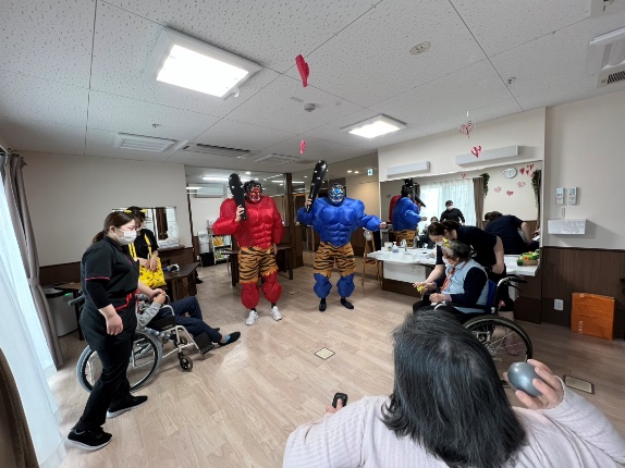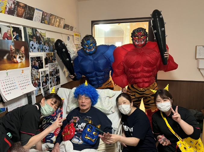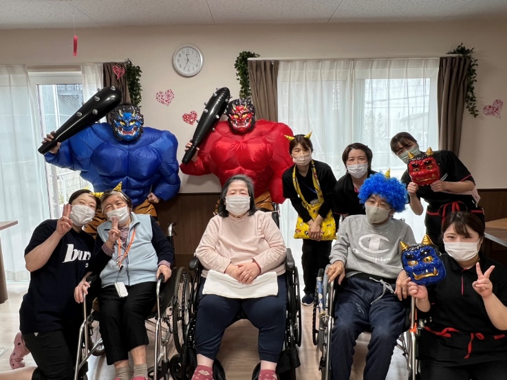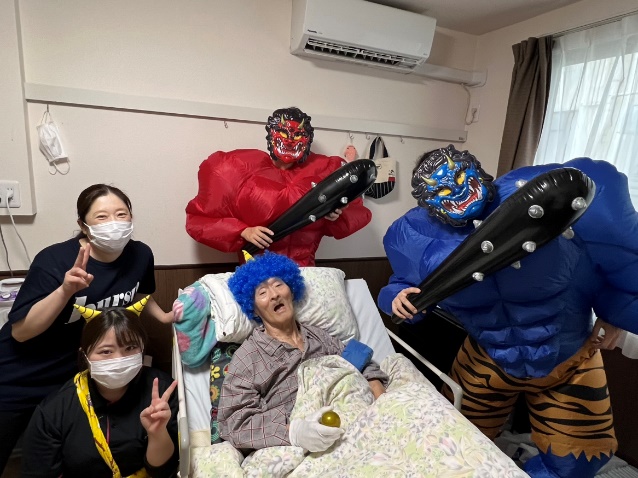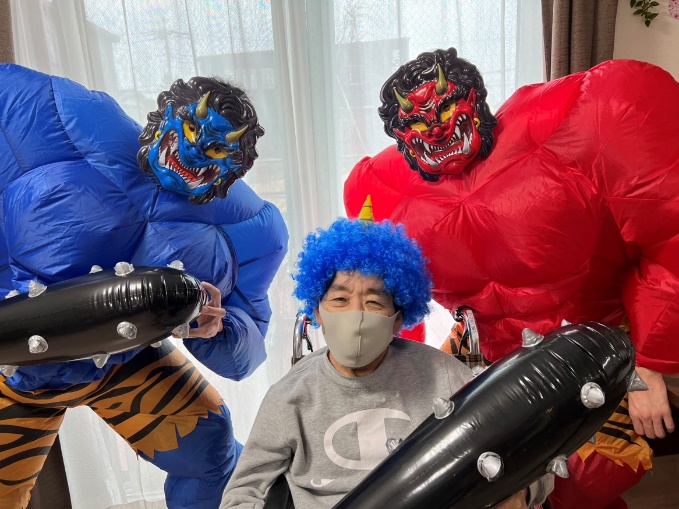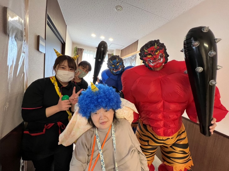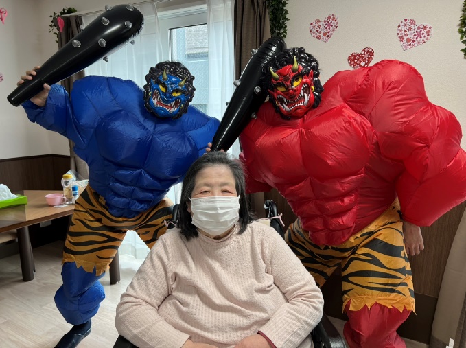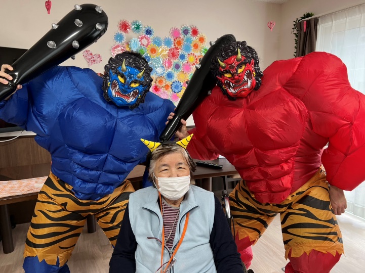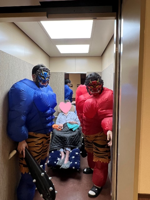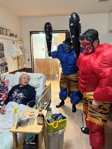 この後、鬼さんたちはお部屋の利用者様のもとへ