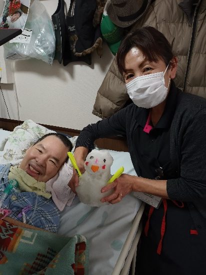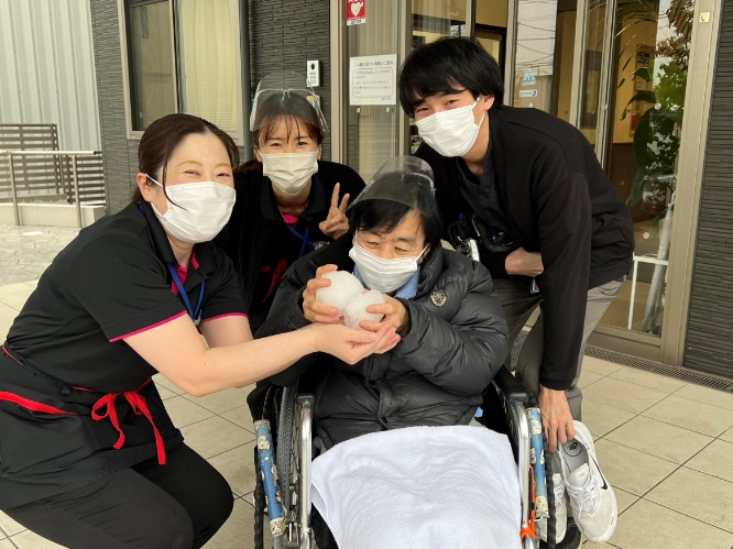 利用者様はダウンコート、職員さんは半そでなのも凄い!!